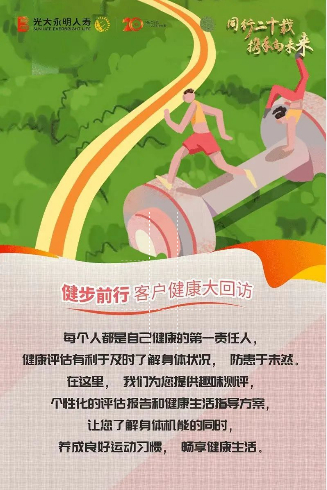 最美四月天,光大永明保险客户服务节又和您见面啦!感恩您一直以来的信任与支持,为了更好的服务每一位客户,与您共享健康生活,我们倾心打造“同行二十载·携手向未来”客户服务节,希望通过此次活动向健康致敬、向生活致敬,在为您带来精彩活动的同时,也为您提供全新的服务体验。期待与您同行健康之路,携手奔赴美好未来!
