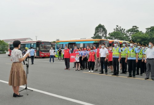 6月2日上午9:00,“喜迎二十大,一起向未来”爱心送考公益活动启动仪式在来宾市公交新能源高铁综合场站顺利举行。共青团来宾市委员会副书记曹捷,来宾市交通运输局副局长黄大乘,广西双蚁药业有限公司副总经理、工会主席程敏光等人出席启动仪式。